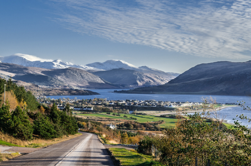 Ullapool is a traditional Highland fishing village founded by the British Fishery Society in 1788. It sits on a sheltered arm of land jutting into Loch Broom and has a natural